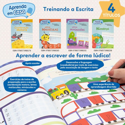 Nesta coleção, a criança terá um ótimo estímulo para praticar a escrita. Aqui, ela irá aprender a identificar e treinar os primeiros traços, as letras e os números, além de realizar a junção das palavras, por meio de atividades que buscam desenvolver habilidades motoras, de maneira simples e lúdica, favorecendo, assim, a consolidação do aprendizado da escrita.
