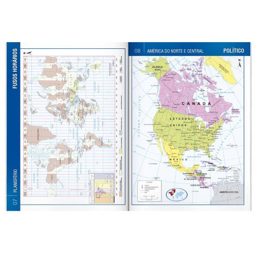 Feito para auxiliar os estudos da geografia, este Atlas contém mapas físicos e políticos dos estados..