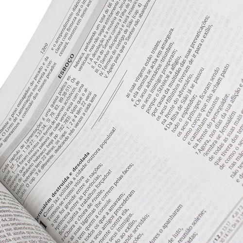 A Bíblia de Estudo da Reforma apresenta um rico e vasto material como notas, artigos e orações com base em cada livro das Escrituras Sagradas. Todos os livros da Bíblia trazem uma introdução sobre o pensamento de Martinho Lutero, bem como um amplo esboço com detalhes históricos e artigos. O objetivo desta publicação é estimular no leitor a reflexão sobre o legado trazido pela Reforma e, especialmente, resgatar as raízes da Reforma Protestante, ao destacar a centralidade da Bíblia para a fé e a vida cristã. Para esta Bíblia de Estudo, adotou-se a consagrada edição Almeida Revista e Atualizada (RA). Fiel aos originais e uma das traduções preferidas pelos leitores, a RA segue a divisão padrão de capítulos e versículos e traz vários subtítulos que ajudam o leitor a visualizar rapidamente o conteúdo das divisões/seções do texto bíblico. Nesta edição, o texto bíblico aparece disposto em duas colunas, com divisão por parágrafos.