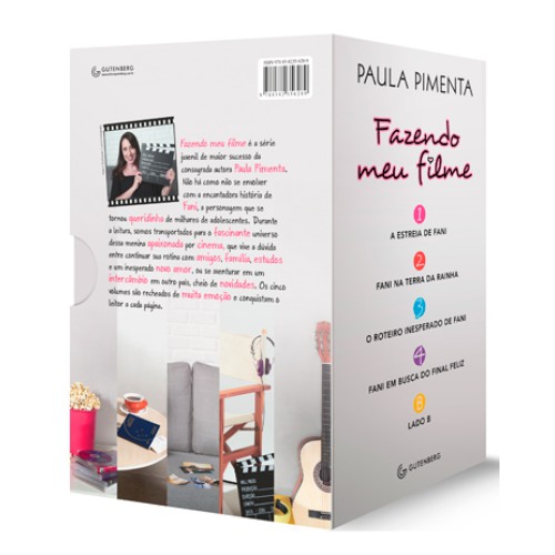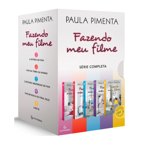 Quando Fazendo meu filme 1 foi lançado, logo caiu no gosto de adolescentes de todo o país. Por causa do sucesso e dos pedidos de leitores por novos livros, Paula Pimenta deu continuidade à história de Fani e Leo, e Fazendo meu filme tornou-se uma série, ganhando outros três volumes. Agora, a Gutenberg lança uma caixa especial com todos os quatro volumes da série e inclui Fazendo meu filme – Lado B, livro em que Leo, o personagem mais amado das fãs, conta sua versão dos fatos até então narrados na perspectiva de Fani. Um presente para você que ama a Paula Pimenta, a Fani, o Leo e todos os personagens da série teen mais aclamada do Brasil.