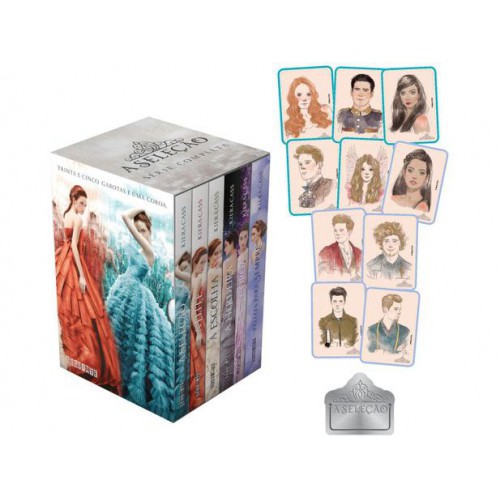 O Box A Seleção é composto por seis livros: A Seleção, A Elite, A Escolha, A Herdeira, A Coroa e Felizes para sempre da autora Kiera Cass impresso pela Editora Seguinte. A série A Seleção completa, da best-seller Kiera Cass, em um box exclusivo. Além da trilogia que narra a história da protagonista America Singer e da duologia que conta a Seleção de Eadlyn, filha de America, o box também traz o volume de contos extras e ilustrados "Felizes para sempre". Compre o box e ganhe brindes exclusivos: marcador metalizado e kit de cards com os personagens da série em ilustrações de Malena Flores.No palácio, em meio a vestidos deslumbrantes e banquetes deliciosos, America precisa aprender a lidar com a ameaça constante dos ataques rebeldes e a disputa acirrada com as outras competidoras, já que Maxon parece especialmente encantado por ela. Com o coração dividido, America começa a refletir sobre tudo o que tinha planejado para si mesma -- e percebe que a vida com que sempre sonhou talvez não seja nada comparada ao futuro que ela nunca tinha ousado imaginar. A história de America é narrada em "A Seleção", "A Elite" e "A escolha", mas continua em "Felizes para sempre", um livro extra ilustrado que traz quatro contos pelo ponto de vista de outros personagens da série, e em "A herdeira" e "A coroa", que narram a história da filha de America.