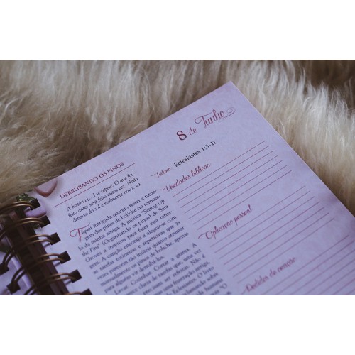 Este diário contém um plano de leitura anual da Bíblia, uma meditação para cada dia do ano, espaços ..