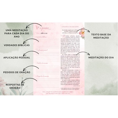Este diário contém um plano de leitura anual da Bíblia, uma meditação para cada dia do ano, espaços ..