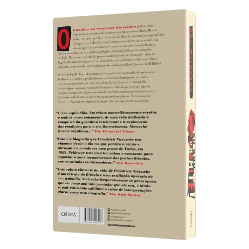 Um filósofo como nenhum outro O trabalho de Friedrich Nietzsche abalou a base do pensamento ocidental e continua a permear nossa cultura. Mesmo assim – ou talvez por isso - ele é um dos filósofos mais mal compreendidos e enigmáticos da História. Sua descrença nos valores da sociedade, sua ideia de que “Deus está morto” e seu conceito sobre o super-homem, que encara a vida sem as muletas da religião e da moral, influenciam gerações até hoje. Mas o que a maioria das pessoas realmente sabe de Nietzsche - além do bigode, da carranca e da persistente associação com o niilismo e o fascismo? Onde colocamos um pensador que era igualmente amado por Albert Camus e Adolf Hitler? O livro de Sue Prideaux destrói mitos e leva os leitores ao mundo de um homem brilhante, excêntrico e profundamente perturbado, iluminando os eventos e as pessoas que moldaram sua vida e obra. Eu sou dinamite! é a biografia essencial para quem quer entender Nietzsche: o filósofo que previu e buscou soluções para nossos tempos conturbados. Ao final, a autora apresenta uma série de aforismos de Nietzsche que se tornaram muito populares: “Torne-se quem você é” e “O que não me mata me faz mais forte” são algumas dessas pérolas. “Livro esplêndido. Um relato maravilhosamente escrito, e muitas vezes comovente, de uma vida dedicada à conquista da grandeza intelectual e à exploração das condições para o seu florescimento. Nietzsche ficaria orgulhoso...” – THE FINANCIAL TIMES “Esta é a biografia que Friedrich Nietzsche tem clamado desde o dia em que perdeu a razão e abraçou um cavalo em uma praça de Turim, em 1889. Prideaux traz uma luz calma e constante para suportar o mais incandescente dos poetas-filósofos, com resultados esclarecedores”. – THE GUARDIAN