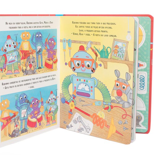 Está quase na hora da festa do Robô Bobi. Rubinho tem uma grande ideia para um presente, mas será que ele consegue encontrar tudo que precisa para construí-lo? Com mais de 20 peças para juntar e construir o seu próprio robô, este livro é o presente perfeito para a hora da historinha em conjunto.