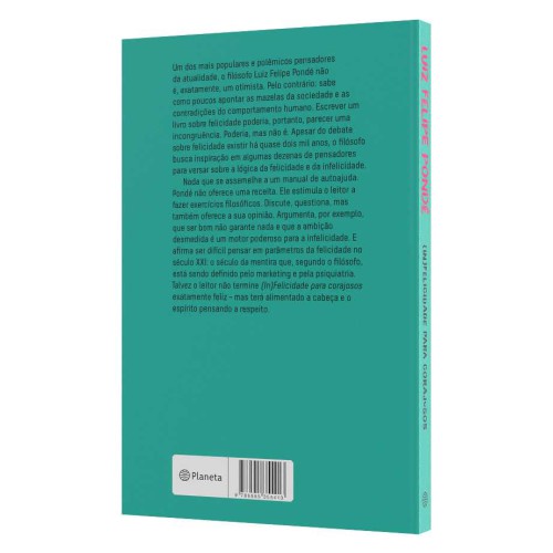 Nada que se assemelhe a um manual de autoajuda. Pondé não oferece uma receita. Ele estimula o leitor a fazer exercícios filosóficos. Discute, questiona mas também oferece a sua opinião Argumenta, por exemplo, que ser bom não garante nada e que a ambição desmedida é um motor poderoso para a infelicidade. E afirma ser difícil pensar em parâmetros da felicidade no século XXI: o século da mentira que, segundo o filósofo, está sendo definido pelo marketing e pela psiquiatria. Talvez o leitor não termine (in)Felicidade para corajosos exatamente feliz – mas terá alimentado a cabeça e o espírito pensando a respeito.