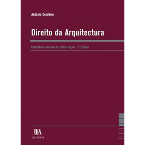 O Direito da Arquitectura, que pode ser visto como um capítulo do direito do urbanismo, relativo ao principal dos seus agentes, tem vindo a ganhar peso dada a sua acrescida problemática própria. A presente colectânea, norteada por intuitos didácticos, já que antes de mais destinada aos alunos das licenciaturas em arquitectura, pode interessar a todos os que se movem nessa área, ao abraçar os principais textos relativos à actividade profissional do arquitecto, desde os que definem o seu estatuto aos que enformam o seu trabalho quotidiano – regimes da urbanização e edificação, da protecção do património, da preservação dos solos, da recuperação e reabilitação de edifícios e zonas urbanas, do ordenamento do território.