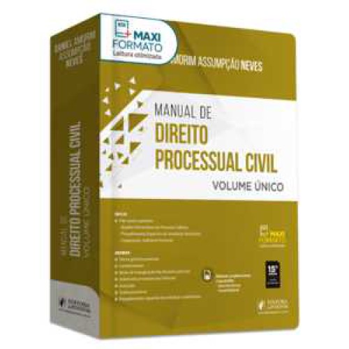 Em MAXIFORMATO para uma LEITURA OTIMIZADA e MAIOR RENDIMENTO!MATERIAL DE APOIO: JUSCLASSA presente obra possui material de apoio na plataforma JusClass:• Materiais complementares à sua escolha: para concurso ou uso profissional.ABORDA:• Teoria geral do processo• Conhecimento• Meios de impugnação das decisões judiciais• Ordem dos processos nos tribunais• Execução• Tutela provisória• Procedimentos especiais e jurisdição contenciosa• Noções Elementares de Processo Coletivo• Procedimentos Especiais de Jurisdição Voluntária• Cooperação JudiciáriaNOVIDADES DESTA EDIÇÃO:• Agora em MAXIFORMATO para uma leitura otimizada e maior rendimento• Três novos capítulos: • Noções Elementares de Processo Coletivo • Procedimentos Especiais de Jurisdição Voluntária • Cooperação JudiciáriaPOR QUE ESCOLHER O LIVRO MANUAL DE PROCESSO CIVIL - VOLUME ÚNICO?Nessa 15ª edição, além das atualizações jurisprudenciais e as melhorIas contínuas de conteúdo, o que já são marcas das renovações ano a ano desse Manual, há três inovações mais substanciais. Na verdade, a inclusão de três novos capítulos.O primeiro deles tem como tema a cooperação judiciária, prevista nos arts. 67 a 70 do CPC. Vinha recebendo mensagens de alguns leitores nas mídias sociais reclamando a ausência de tal tema, em especial diante do aumento de visibilidade que a matéria tem recebido de parcela da doutrina, do CNJ e, por consequência, dos concursos públicos. Ainda que não se possa considerar um tema de grande incidência prática, entendi que havia chegado a hora de destinar um capítulo a seu respeito no Manual.O segundo capítulo é uma antiga dívida com o leitor. Trata-se dos procedimentos especiais de jurisdição voluntária previstos pelo Código de Processo Civil. Desde a primeira edição do Manual, fiz a opção de tratar apenas dos procedimentos especiais de jurisdição contenciosa por conta de sua maior relevância doutrinária, prática e da maior incidência do tema em concursos públicos. Mas sempre com um desejo de ampliar o tema dos procedimentos especiais também para a jurisdição voluntária. Finalmente o desejo tornou-se realidade.O terceiro capítulo incluído foi uma ideia recente, nascida em conversas com os Editores da Juspodivm. Preliminarmente, houve a ideia de juntarmos o Manual de Processo Civil com o Manual de Processo Coletivo formando um grande manual de processo individual e coletivo. Pesando os prós e contras, resolvemos manter os dois Manuais, mas criando no Manual de Processo Civil um capítulo com as noções elementares de processo coletivo. Assim, o leitor que quiser se aprofundar no tema, continuará a ter o Manual de Processo Coletivo à sua disposição.O Autor