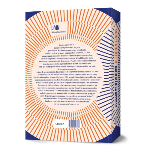Andar, escrever e se comunicar só através da força do pensamento. Aquilo que era encarado como ficção científica, no século XXI está se tornando uma realidade. Um dos principais exponentes do estudo e da realização dessa interface cérebro-máquina é o neurocientista brasileiro Miguel Nicolelis. Eleito por revistas como a Scientific American e a Foreign Policy como um dos mais importantes cientistas e pensadores do mundo, ele está conseguindo fazer com que paraplégicos voltem a andar e consigam chutar uma bola através da força do pensamento. A base de seu estudo está descrito no best-seller Muito além do nosso eu – A nova neurociência que une cérebro e máquinas, e como ela pode mudar nossas vidas. Considerado o melhor livro de ciências em 2008, quando foi originalmente publicado, ganha uma nova e atualizada edição. Nele, Nicolelis explica como o cérebro cria o pensamento e explica porque aposta que o culto ao corpo será substituído pelo culto ao cérebro. Recheado de gráficos e fotos, o livro aponta para os avanços nas pesquisas em neurociências que estão revolucionando o mundo. E que irão mudar para melhor o modo como vivemos. “Sentado na varanda de sua casa de praia, você um dia poderá conversar com uma multidão, fisicamente localizada em qualquer parte do planeta, por meio de uma nova versão da internet (a ‘brainet’), sem a necessidade de digitar ou pronunciar uma única palavra. Nenhuma contração muscular envolvida. Somente através do seu pensamento”, diz ele.