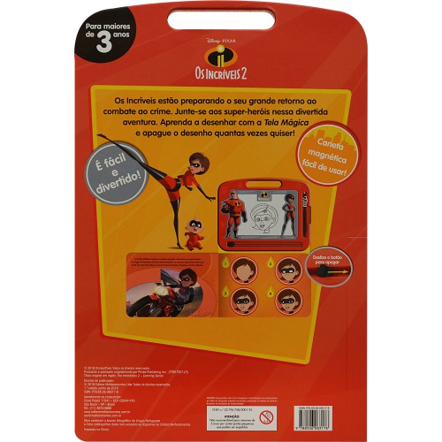 Os Incríveis estão preparando o seu grande retorno ao combate ao crime. Junte-se aos super-heróis nessa divertida aventura. Aprenda a desenhar com a Tela Mágica e apague o desenho quantas vezes quiser!