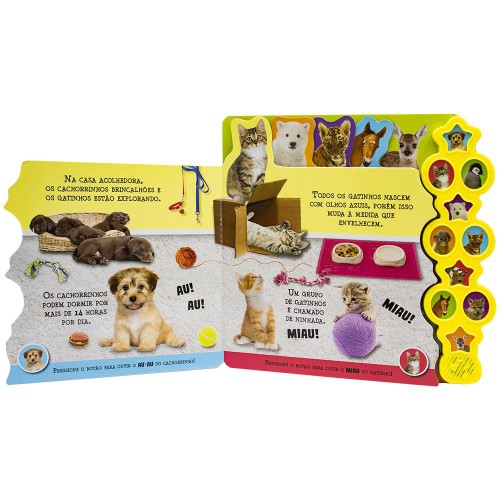 AU! CHEEP! MIAU! Aprenda mais sobre bebês animais neste livro barulhento cheio de informações. Com dez sons de animais e abas de formato fácil de usar, este livro é a forma perfeita para explorar o adorável mundo dos filhotes.