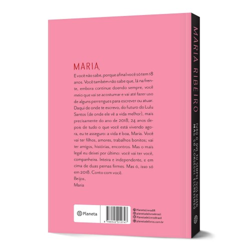 "E você não sabe, porque afinal você só tem 18 anos. Você também não sabe que, lá na frente, embora continue doendo sempre, você meio que vai se acostumar e vai até fazer uso de alguns perrengues para escrever ou atuar. Daqui de onde te escrevo, do futuro do Lulu Santos (de onde ele vê a vida melhor), mais precisamente do ano de 2017, 24 anos depois de tudo o que você está vivendo agora, eu te asseguro: a vida é boa, Maria. Você vai ter filhos, amores, trabalhos bonitos; vai ter amigos, histórias, encontros. Mas o mais legal eu deixei por último: você vai ter você, companheira. Inteira e independente, e em cima de duas pernas firmes. Mas ó, isso só em 2017. Conto com você. Beijos, Maria"