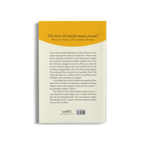 Como está seu relacionamento com Deus? Este livro tem apenas um propósito: colocar em perspectiva a forma como você se relaciona com Ele. E, a partir desse ponto, te guiar até o caminho certo para uma relação saudável com o Criador. Você já se perguntou se serve a Deus por medo de ir para o inferno? Quem sabe, você acredita que ser fiel no dízimo proporcionará uma vida financeira próspera? Ou então que Deus espera de você grandes obras? Ou, ainda, que basta orar e pedir com fé, e seus desejos serão atendidos como num passe de mágica? A sociedade pós-cristã foi rápida em enquadrar Deus numa série de rótulos em resposta aos inúmeros fiéis que chegam todos os dias à igreja em busca de uma solução — de preferência, rápida e indolor. Em Vida com Deus, Skye Jethani analisa como é e como deveria ser nossa relação com o Criador. Este livro não será uma mensagem fácil e nem trará respostas simples. Mas aquele que tiver coragem e fé sincera colherá os frutos de uma vida com Deus.